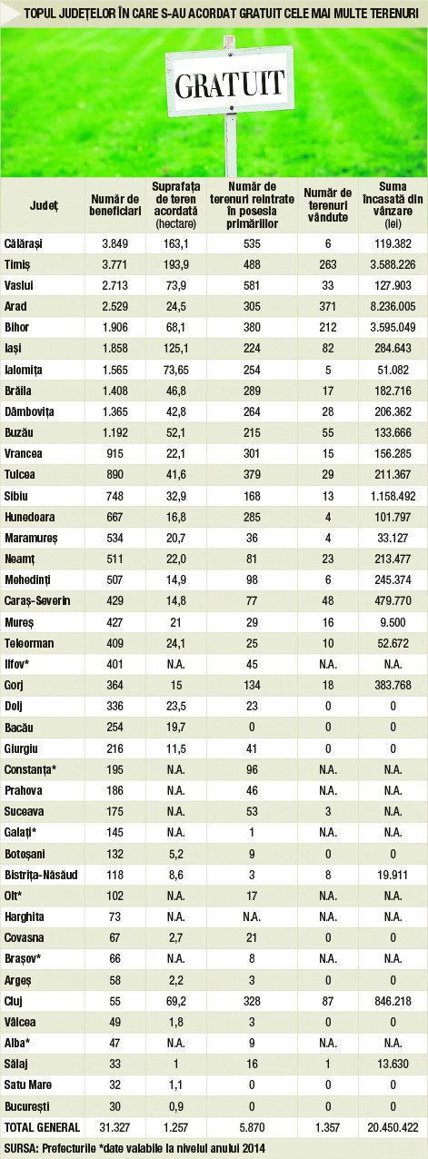 Cele peste 41,6 hectare de teren oferit gratuit sunt printre cele mai mari suprafeţe împărţite tinerilor dintre toate judeţele ţării. Ca în majoritatea localităţilor din ţară, şi în cazul judeţului Tulcea, cele mai multe loturi au fost împărţite în mediul rural. Tinerii de la oraş s-au ales cu doar 112 loturi , în timp ce locuitorii din sate şi comune au primit 716 terenuri, conform datelor transmise revistei Capital de Prefectura judeţului Tulcea.