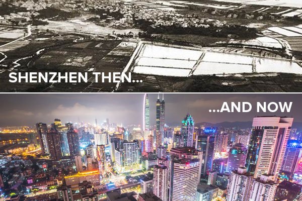 China este una dintre acele ţări în curs de dezvoltare care au trecut cel mai recent prin procesul de industrializare, schimbându-se dintr-o societate axată pe producţia agricolă într-una bazată pe producţie industrială. În 1978, după moartea lui Mao Zedong, Deng Xiaoping a renunţat la dogmele vechi şi a declanşat o amplă reformă economică, orientată spre o liberalizare controlată şi treptată, atât internă, cat şi externă. Acesta a ales cinci zone care urmau să devină ţinta investiţiilor. Shenzhen a fost una dintre cele cinci regiuni alese. Shenzen este situat pe malul râului Pearl River la Nord de Hong Kong. În urmă cu 30 de ani aici trăiau câteva familii de pescari, iar satul era numit Baoan County. Numele Shenzhen l-a primit în anul 1979.