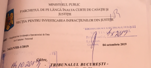 În data de 25 septembrie 2019, când ia la cunoștință de acestă adresă, la termen, petentul învederează instanța civilă că este o susținere mincinoasă asumată sub semnătură de către procurorul șef adjunct Marin, menită să inducă în eroare instanța de judecată și solicită respectuos ca instanța civilă să facă o nouă cerere, întrucât în mod clar originalul nu se află la acel dosar, lucru de care și partea adeversă (mincinoasă din start) are știință.