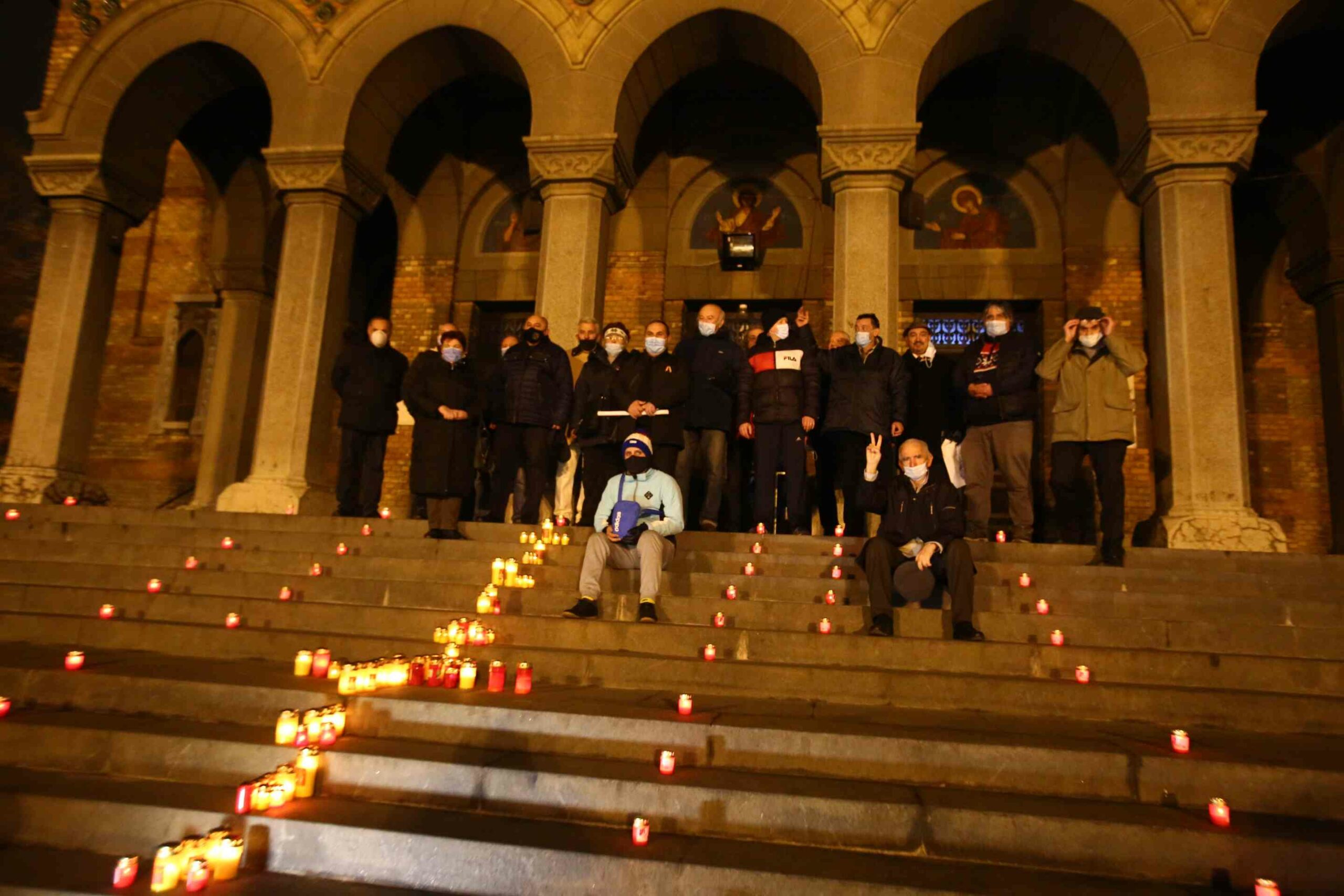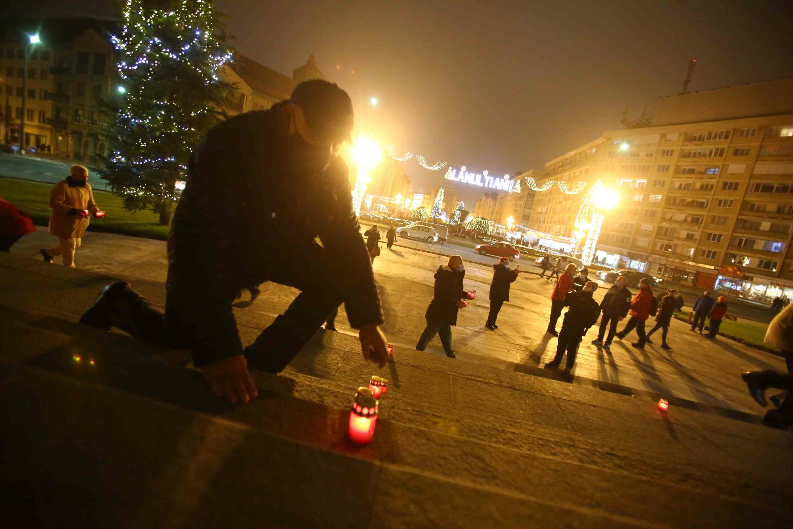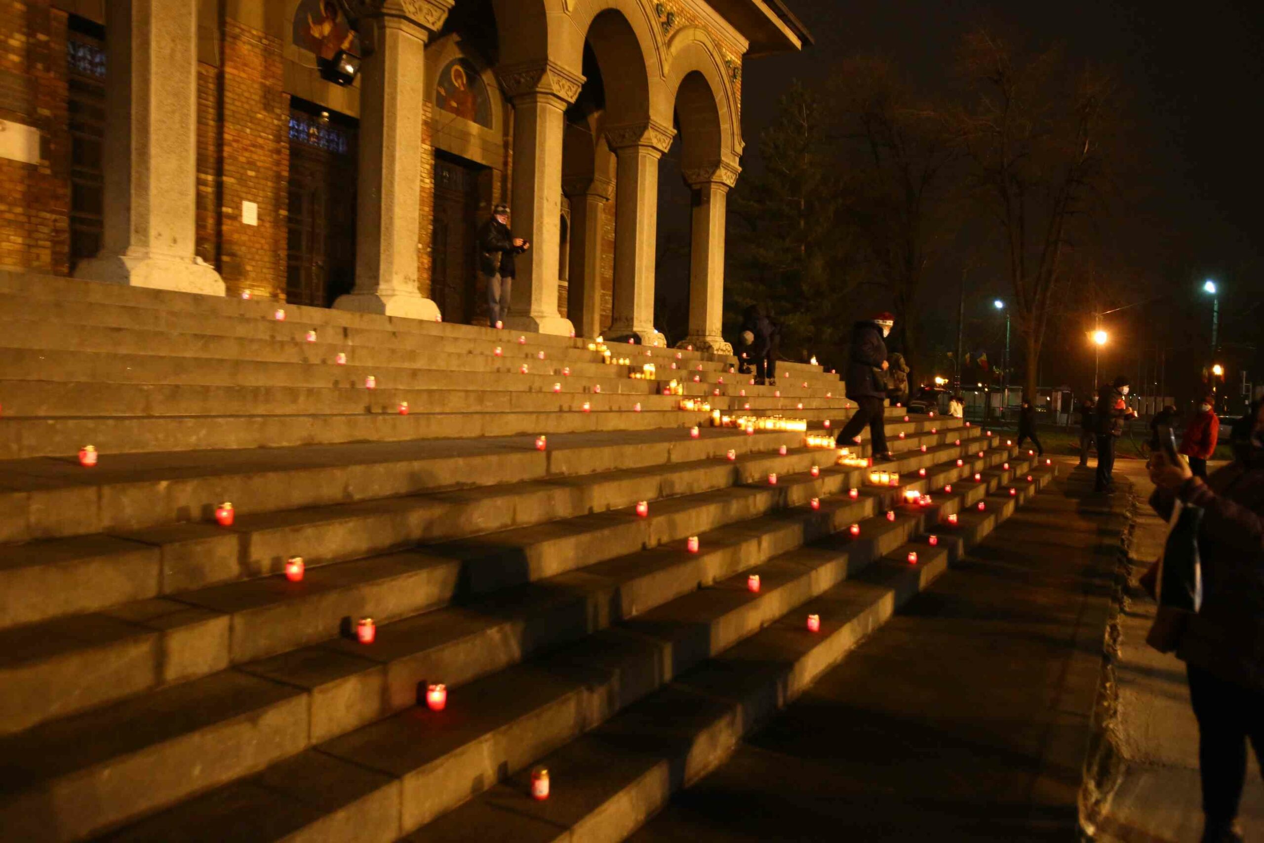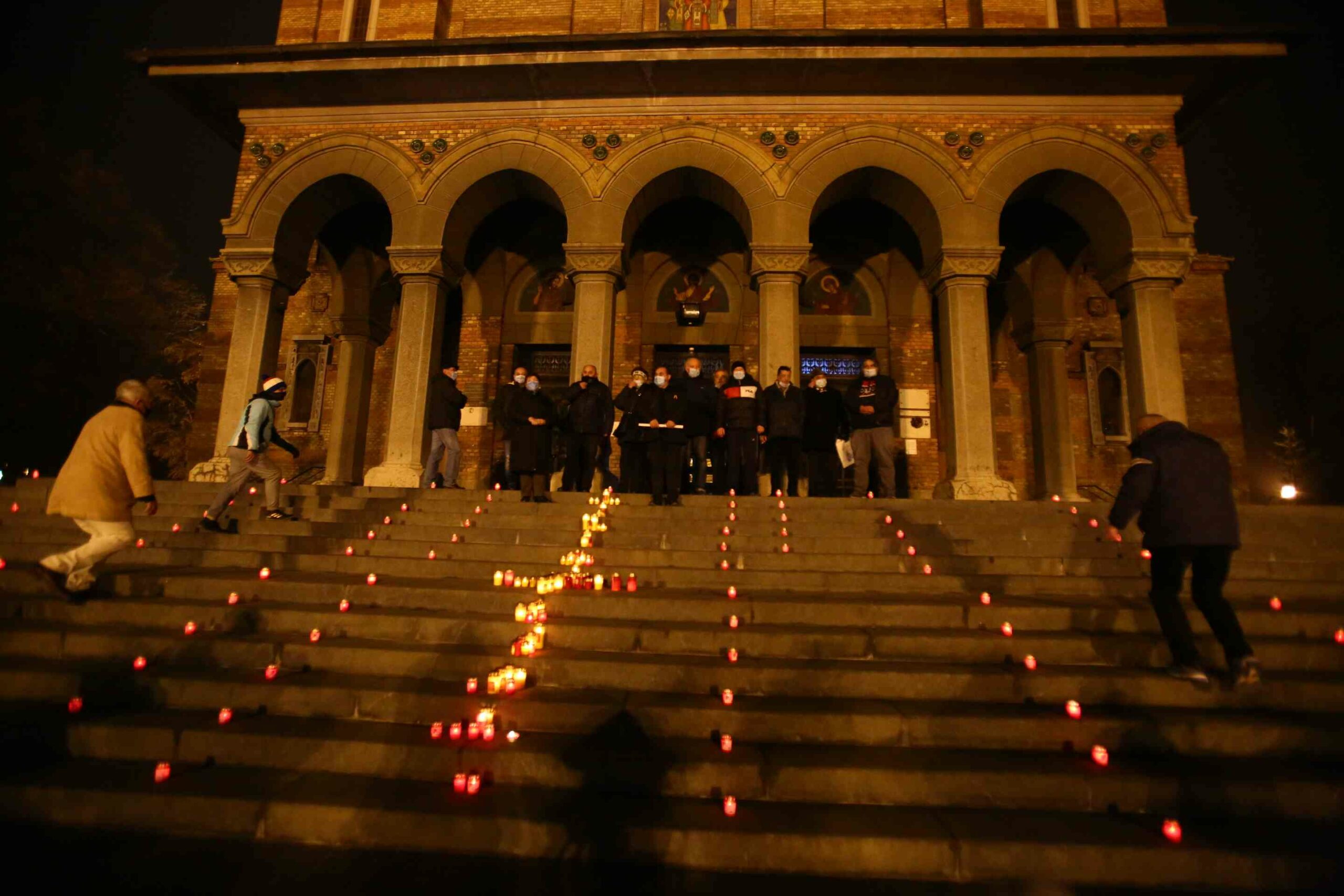 Pe treptele catedralei din Timișoara au fost aprinse lumânări în memoria celor care au murit la Revoluția din Decembrie 1989.
