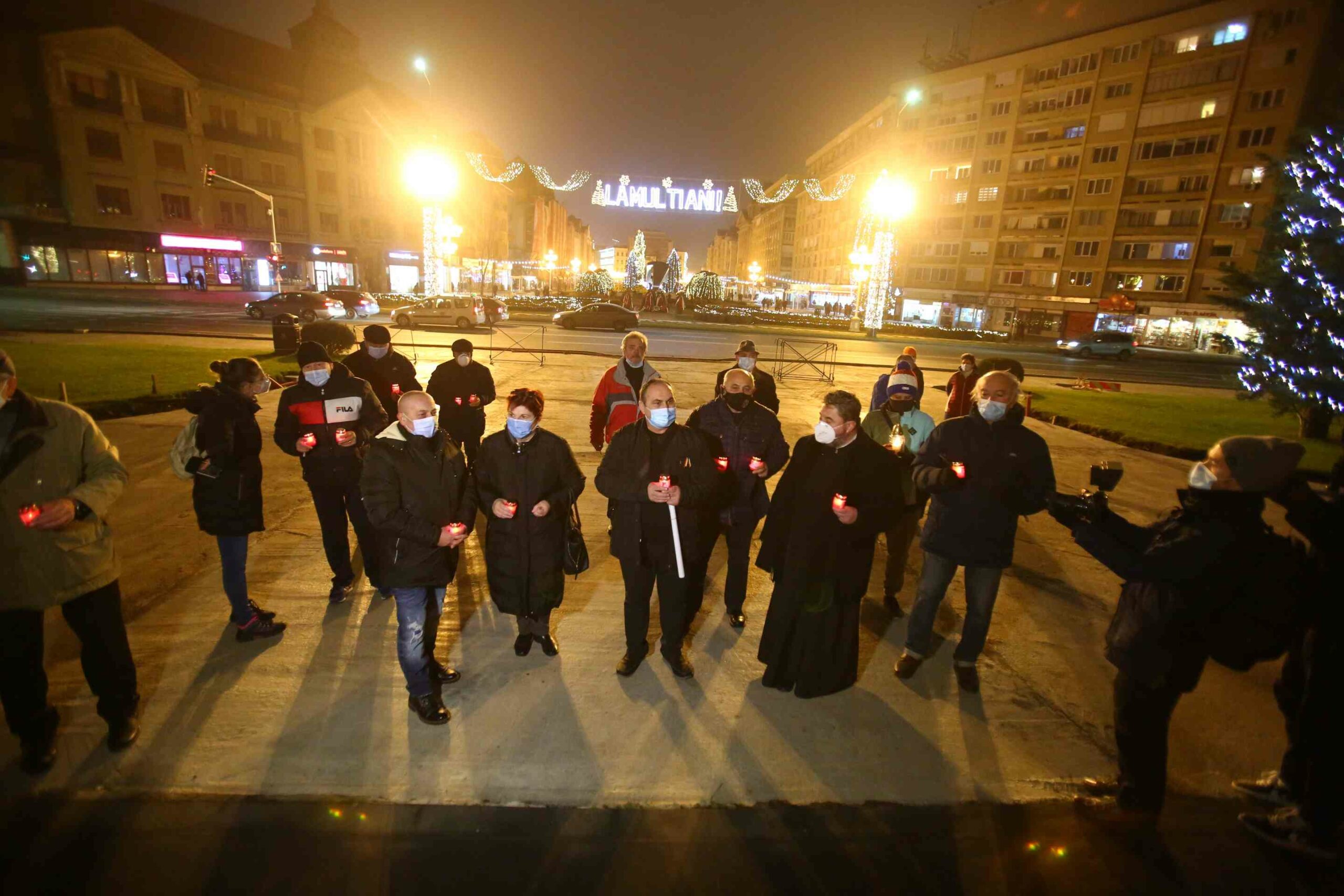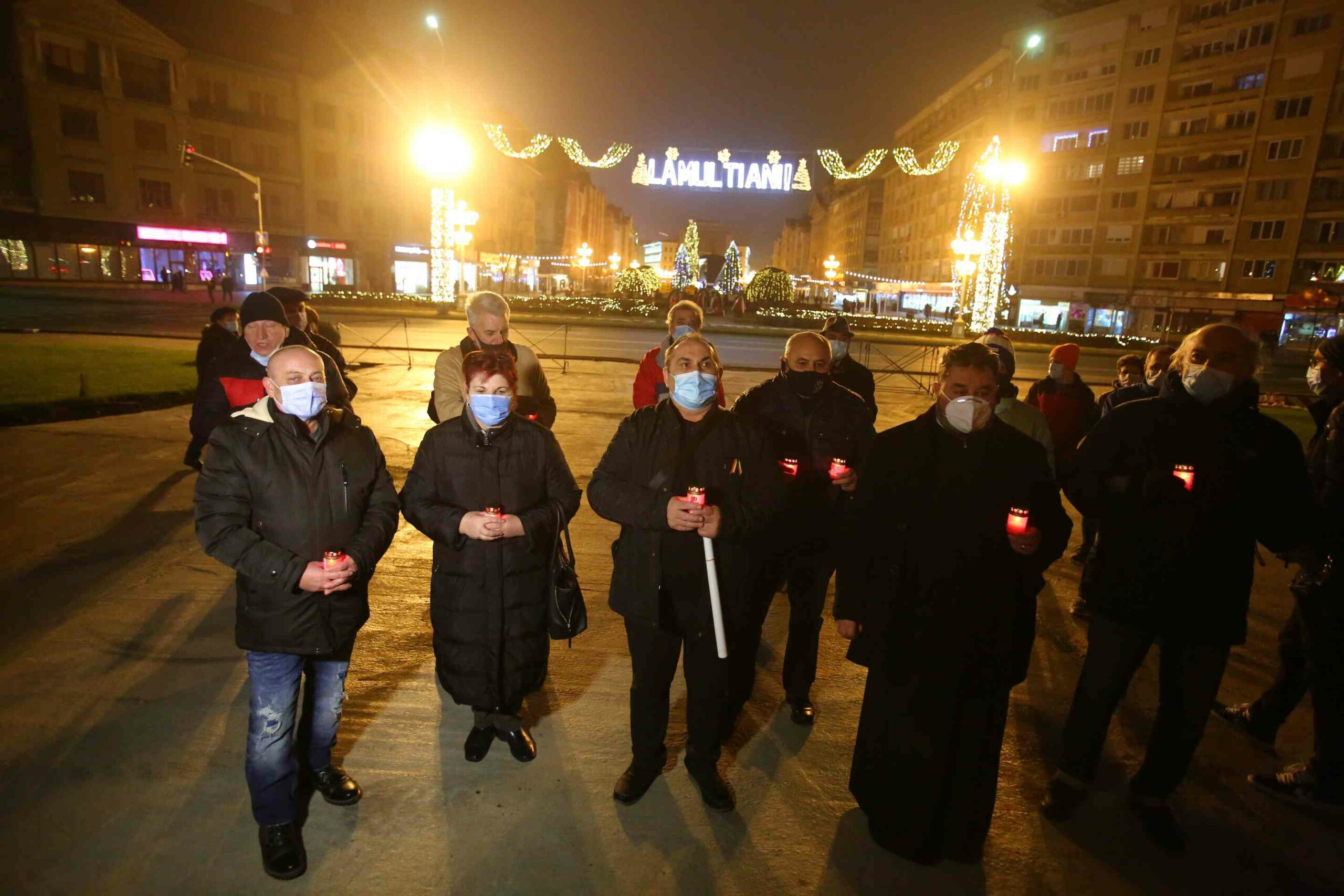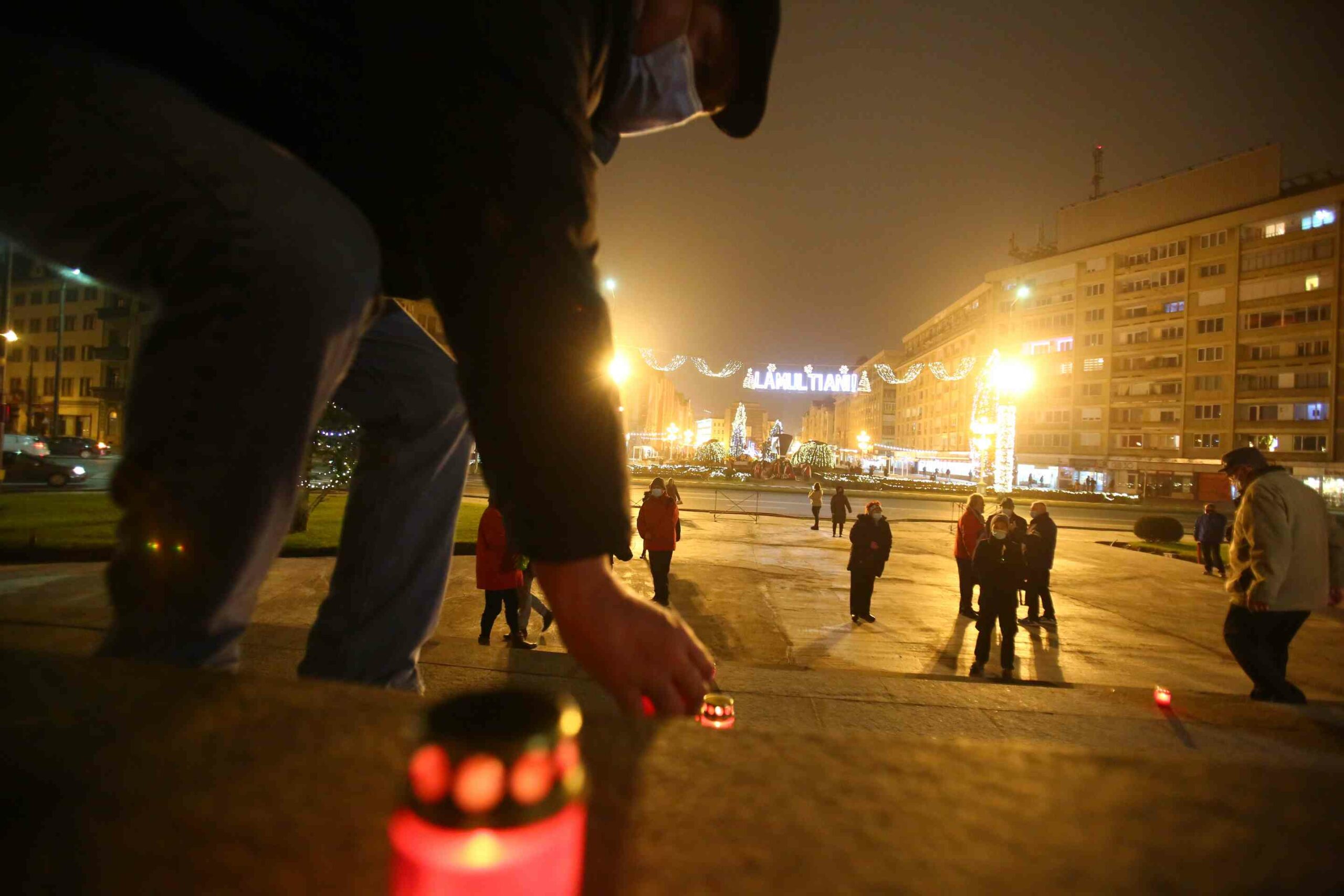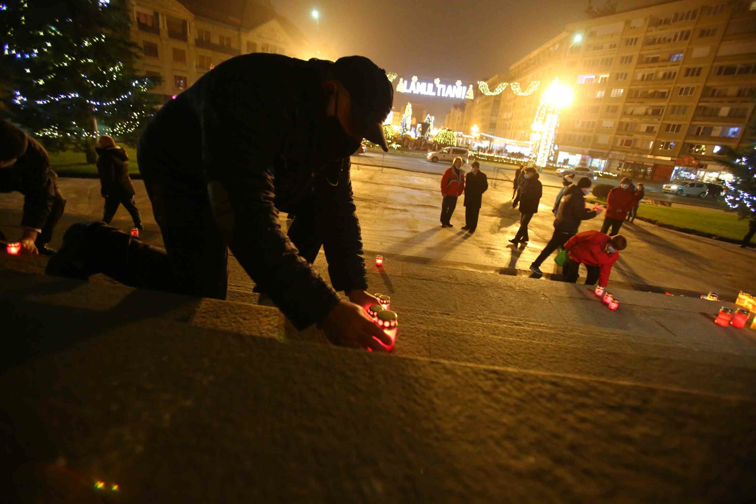 Revoluționari și cunoștințe ale celor care s-au jertfit pentru libertate au venit astăzi în fața catedralei din Timișoara pentru a aprinde lumânări în memoria lor, a celor care au murit pe treptele catedralei și a celor care s-au jertfit la Revoluție.