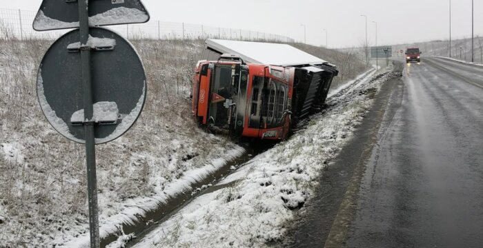 Accesul este restricționat în nodul rutier Giarmata, de pe autostrada A1. Motivul este efectuarea procedurilor de ridicare a unui autotren răsturnat în afara părții carosabile.