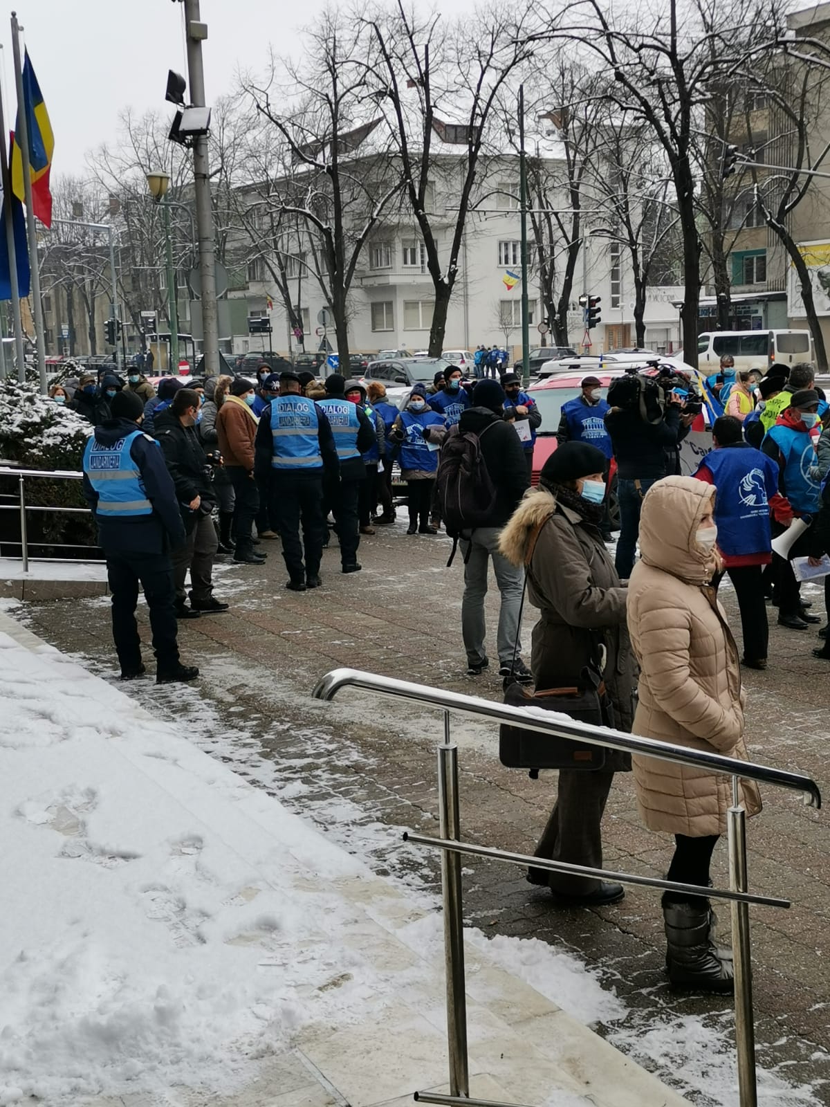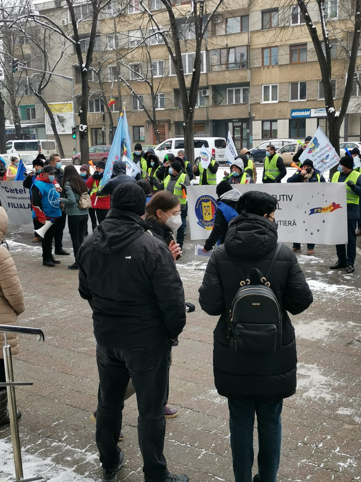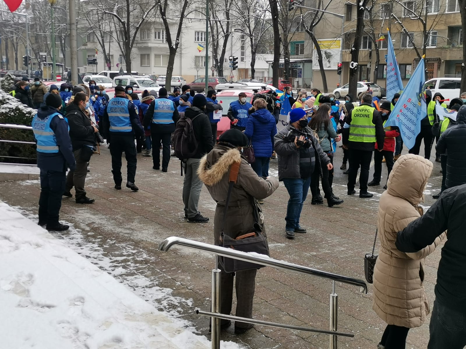În jur de o sută de persoane, dotate cu pancarte și steaguri, au cerut majorarea salariului minim cu o sumă decentă, deblocarea negocierilor pentru contractele colective de muncă, dar și respectarea legislației din domeniul muncii, de către cei aflați la guvernare.