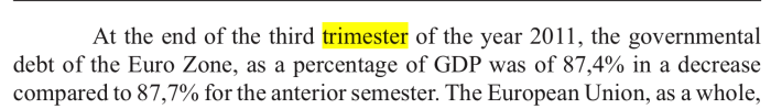 - Conținutul copiat și distorsionat (comunicatul Eurostat se referă la datoria publică la sfârșitul trimestrului III, iar conținutul copiat susține aceleași procente, dar pentru întreg anul 2011):