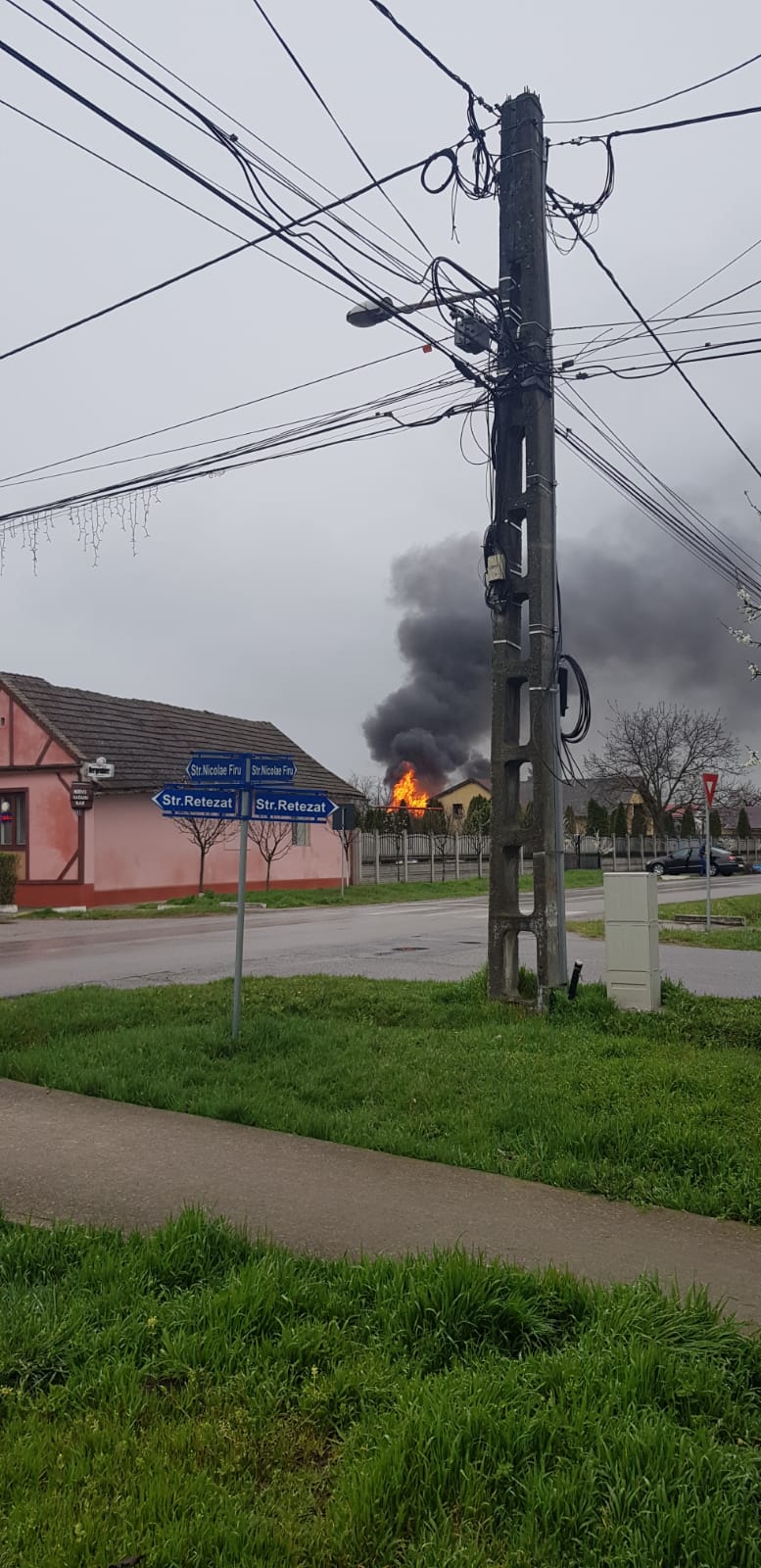 La faţa locului au ajuns de urgenţă cinci maşini de pompieri, care au localizat incendiul la o casă cu structură de lemn. Din fericire nu s-au produs victime. Încă nu se cunoaşte sursa incendiului.