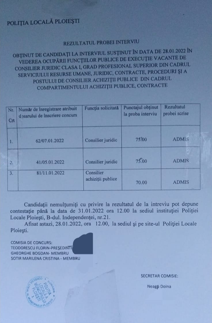 Reamintim ca, la doua saptamani de zile de la acest concurs ilegal, mai exact la data de 15.02.2022, Proiectul de buget pentru anul 2022 al Poliției Local Ploiești a fost aprobat de Consiliul Local Ploiesti.