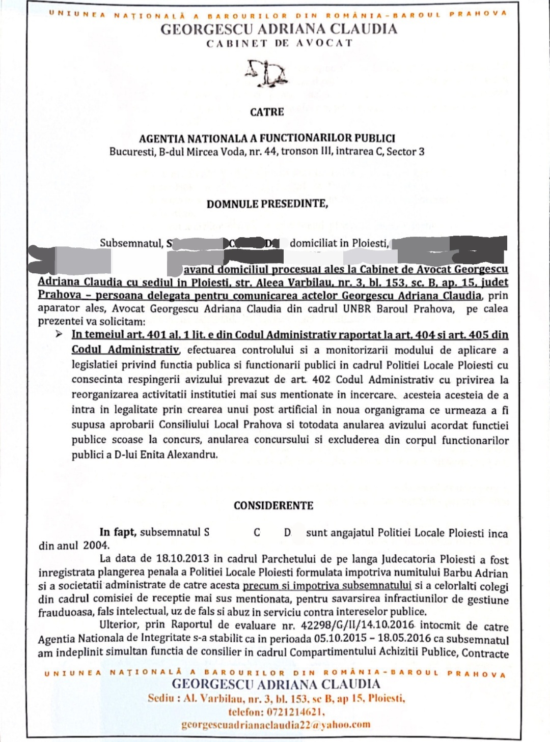 ANFP a fost sesizata, prin Cabinet Avocat, cu privire la ilegalitatile de la Politia Locala Ploiesti.