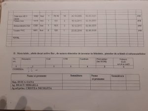 După care tot comisia de inventariere (Toma Magdalena) face propunerile de casare a obiectelor de inventar care îndeplinesc condiții de casare, iar pentru cele care nu îndeplinesc condițiile de casare sau sunt lipsă se face cercetare administrativă, iar vinovaților le sunt imputate contravaloarea bunurilor respective.